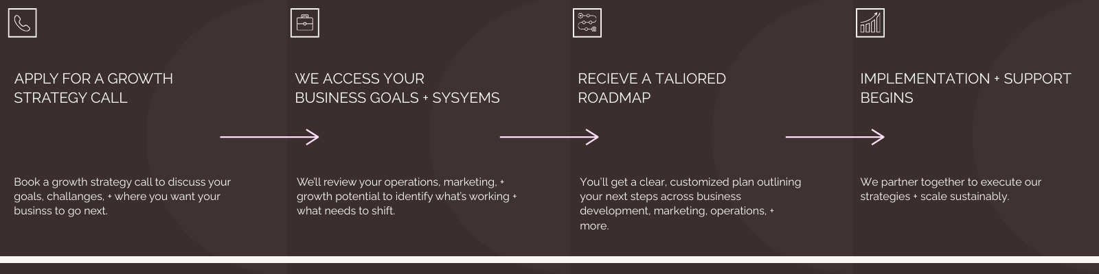 When we work together, I don’t sit on the sidelines. I integrate directly into your business to help you organize what’s messy, clarify what’s unclear, and build the structure your company needs to grow sustainably. From refining your offers and improving your operations to strengthening your team and supporting long-term growth initiatives, my role is to bring clarity, direction, and execution to every stage of your business.